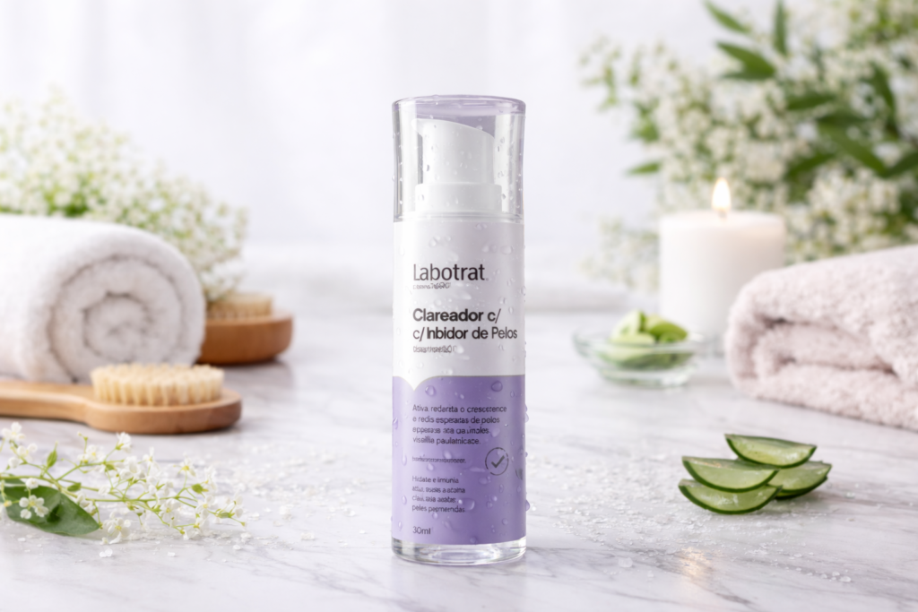 O Clareador + Inibidor oferece ação dupla: clareia manchas escuras E inibe o crescimento dos pelos. É o tratamento completo. Já o Inibidor de Pelos foca exclusivamente em reduzir o crescimento, sendo ideal para quem não tem manchas escuras ou já possui tom uniforme.